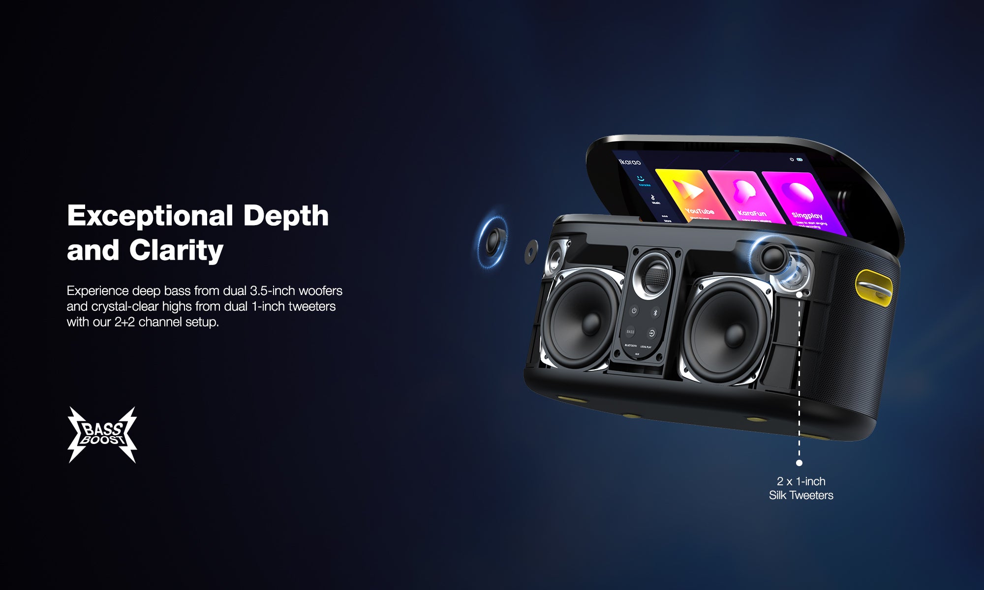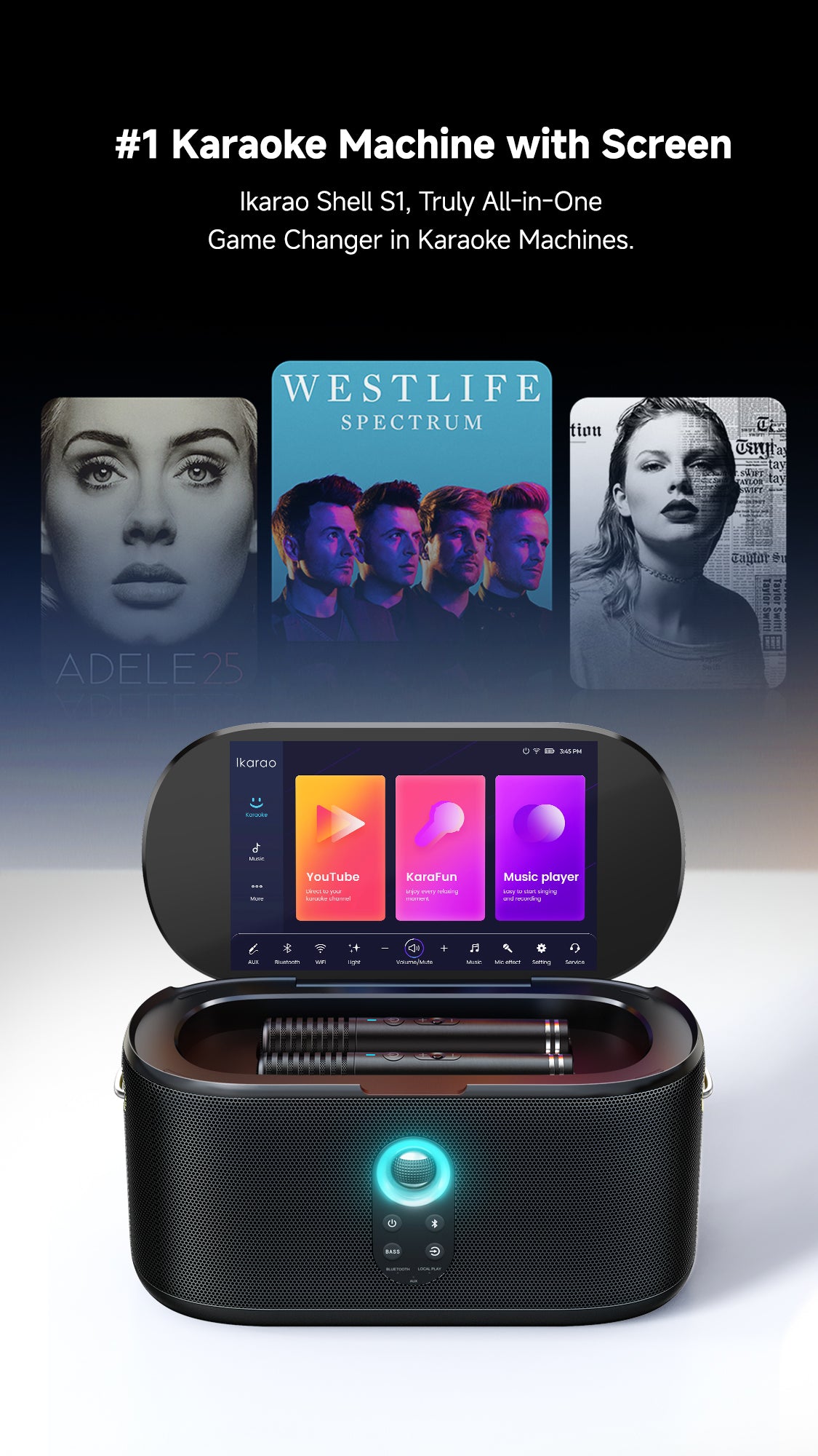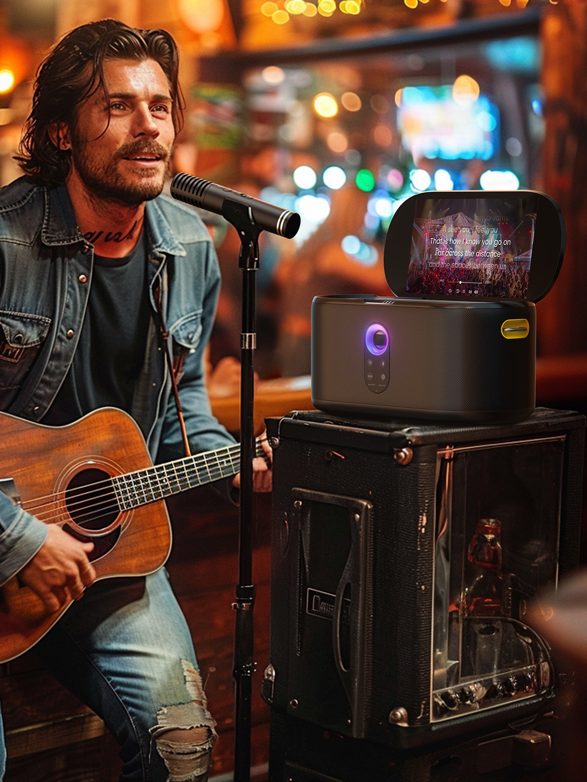Ikarao S1 enhances your parties with high-quality sound and portability. Its 8-inch touchscreen lets everyone sing along, and the long-lasting battery keeps the fun going.