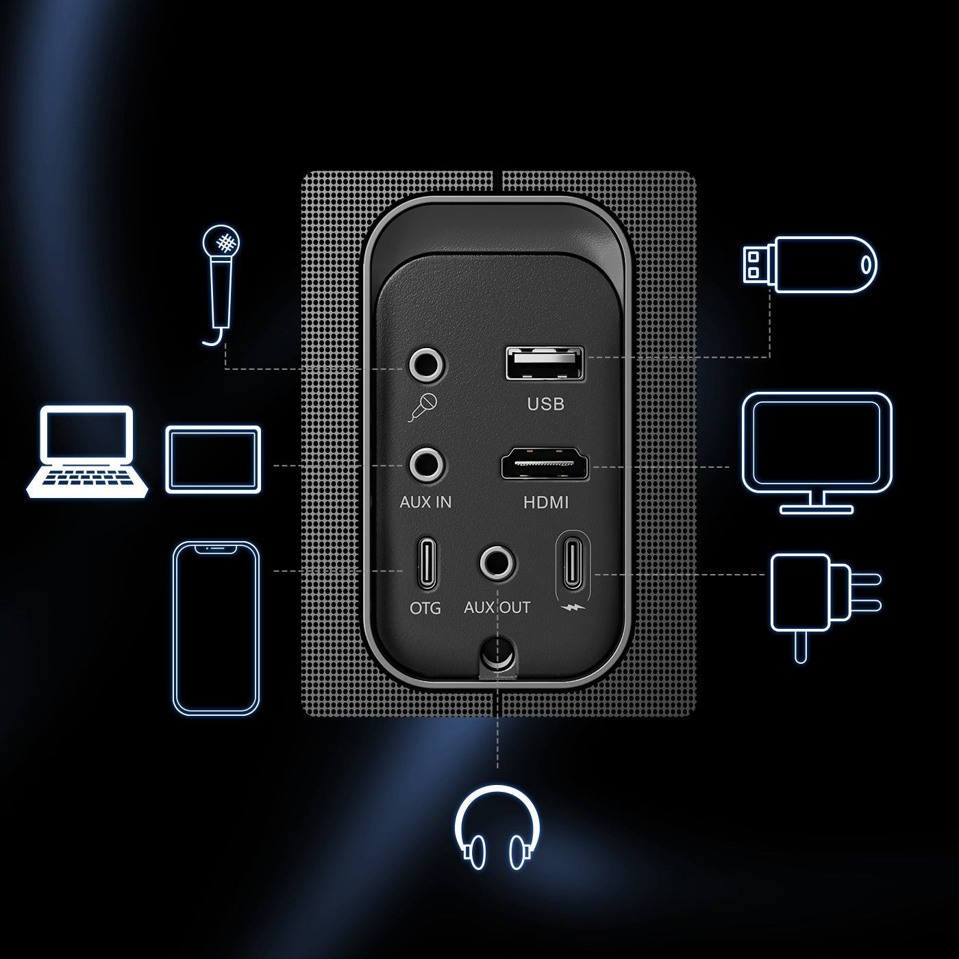 Connect easily with USB, AUX In/Out, HDMI, and Bluetooth V5.4. Whether you’re streaming music, plugging in a microphone or guitar, or switching between devices, the Ikarao Shell S1 offers seamless transitions to suit any occasion.