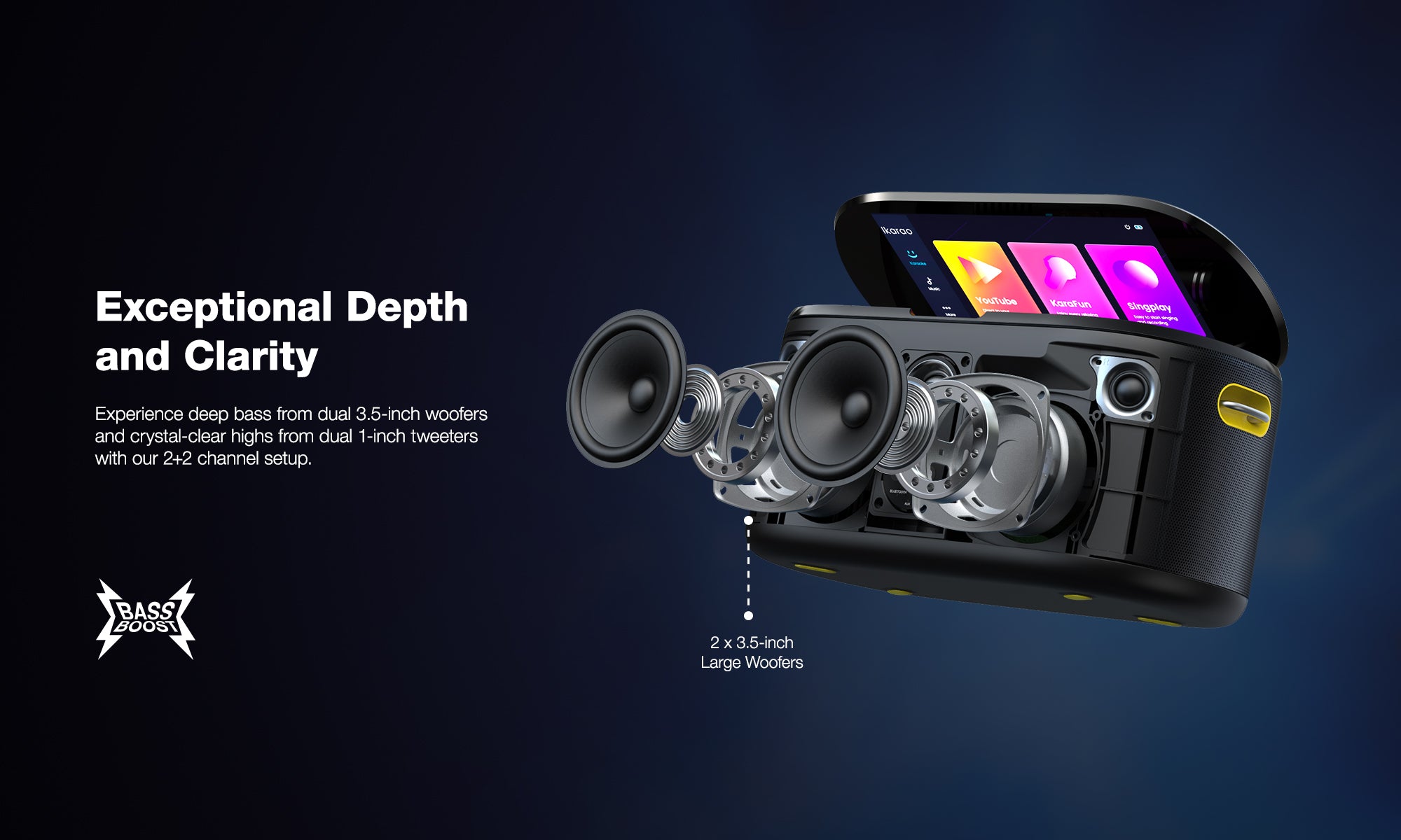 The Ikarao Shell S1 delivers impressive audio with dual 3.5-inch woofers and 1-inch tweeters, offering a sound pressure level (SPL) of 104dB. With a frequency response of 50Hz-18kHz, it provides clear, well-balanced sound, ideal for gatherings, live performances, and outdoor events.